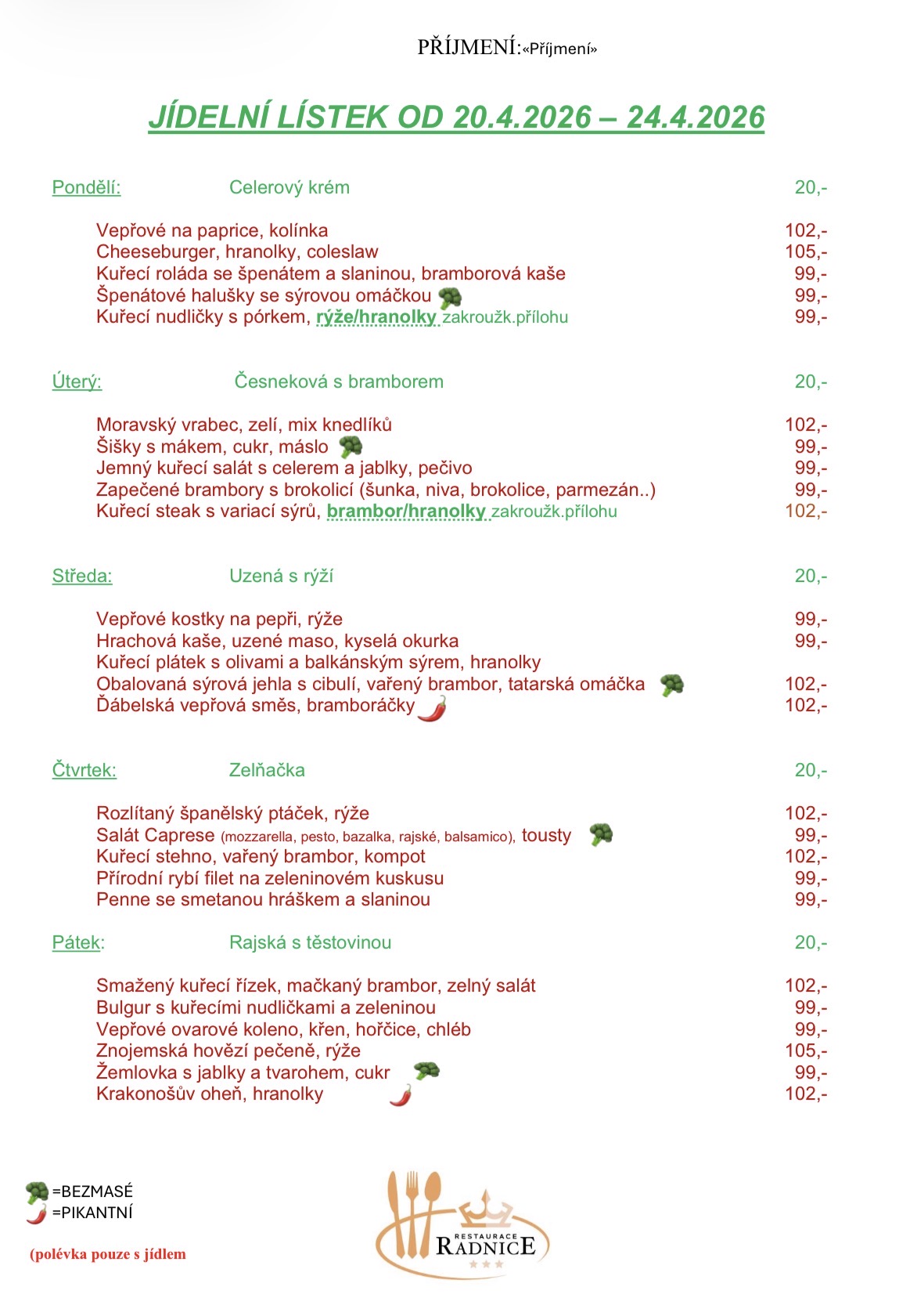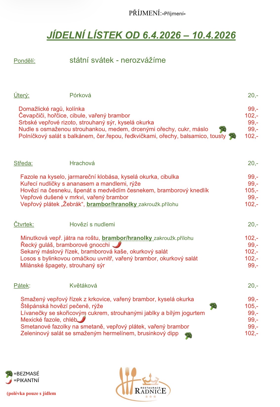RESTAURACE RADNICE DĚČÍN - ROZVOZ JÍDEL